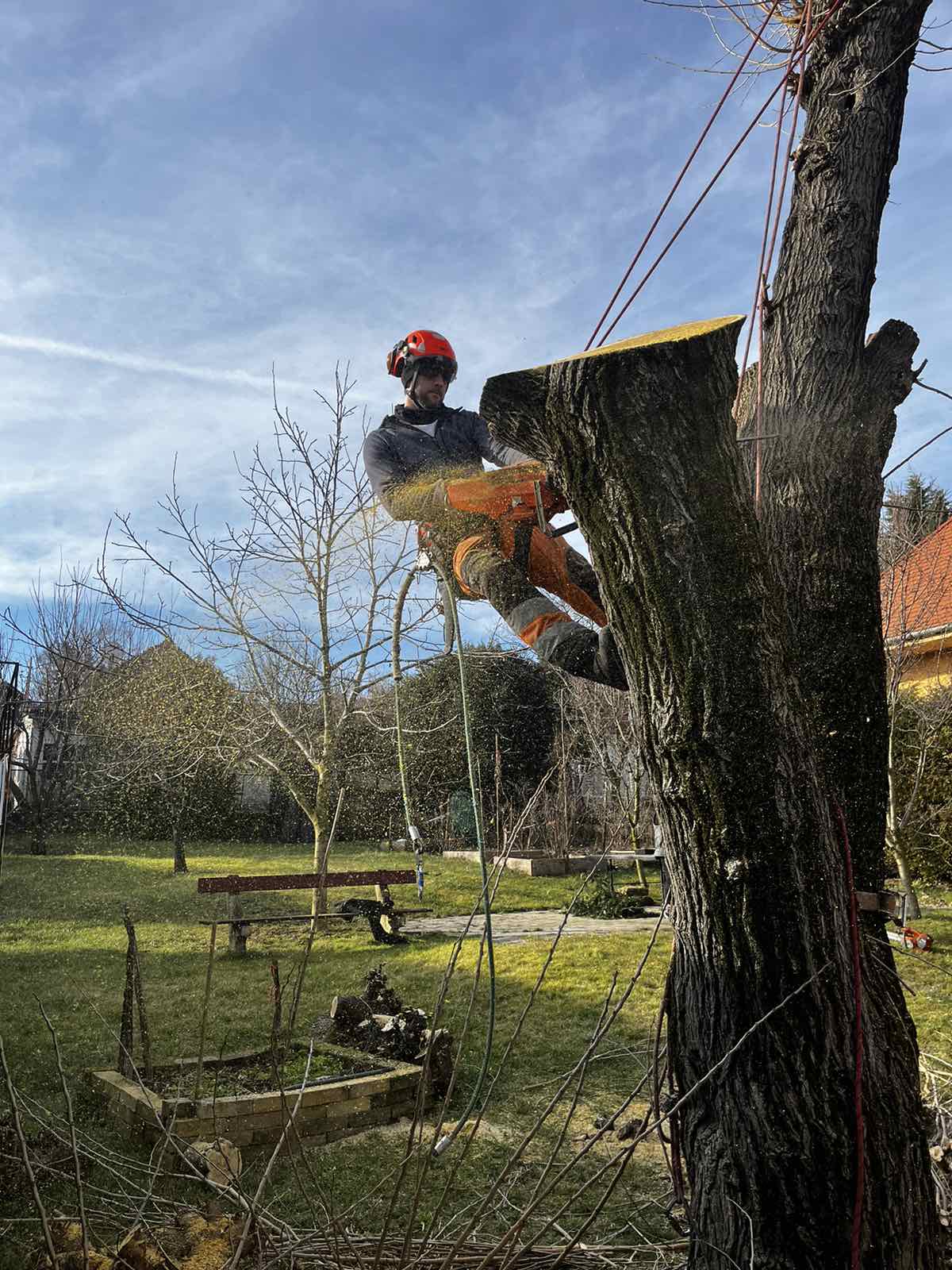 Célunk, hogy minden fakivágás biztonságos, precíz és környezetkímélő legyen – legyen szó akár családi ház kertjéről, társas ház udvaráról, vagy közterületről.